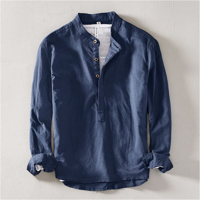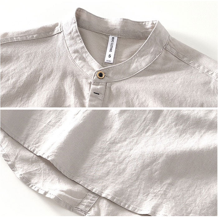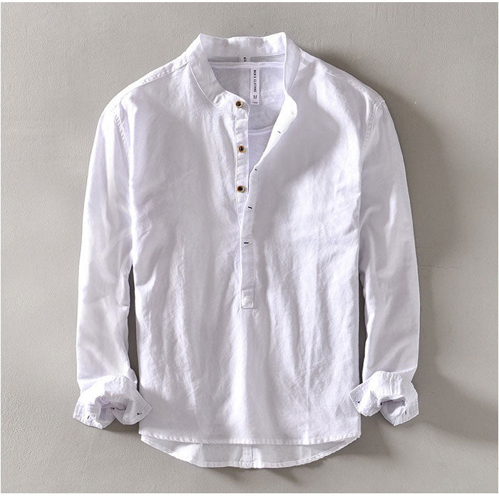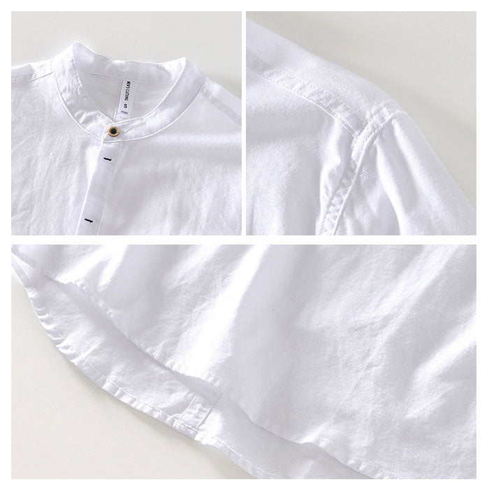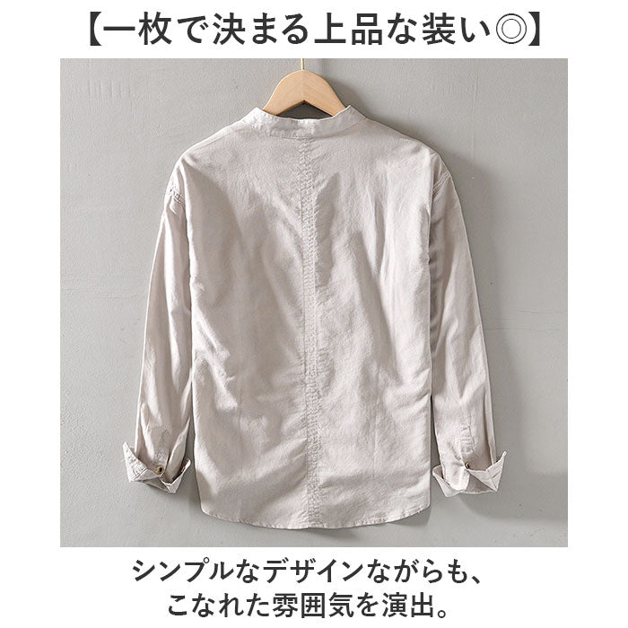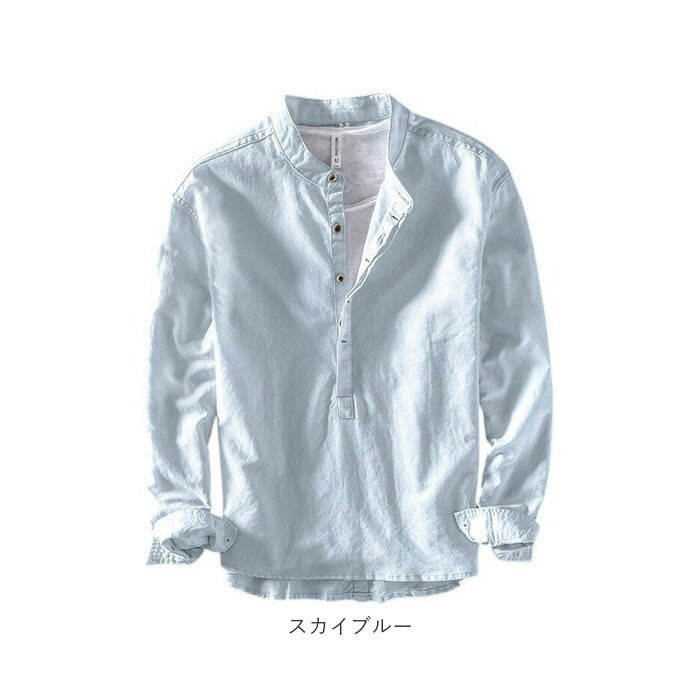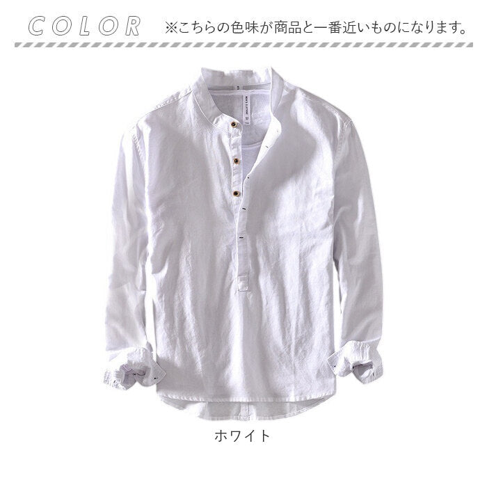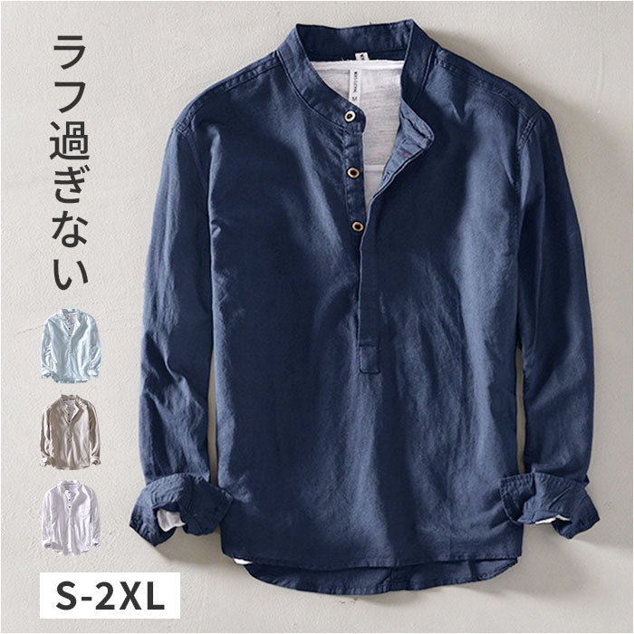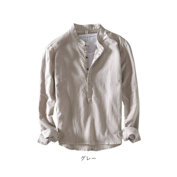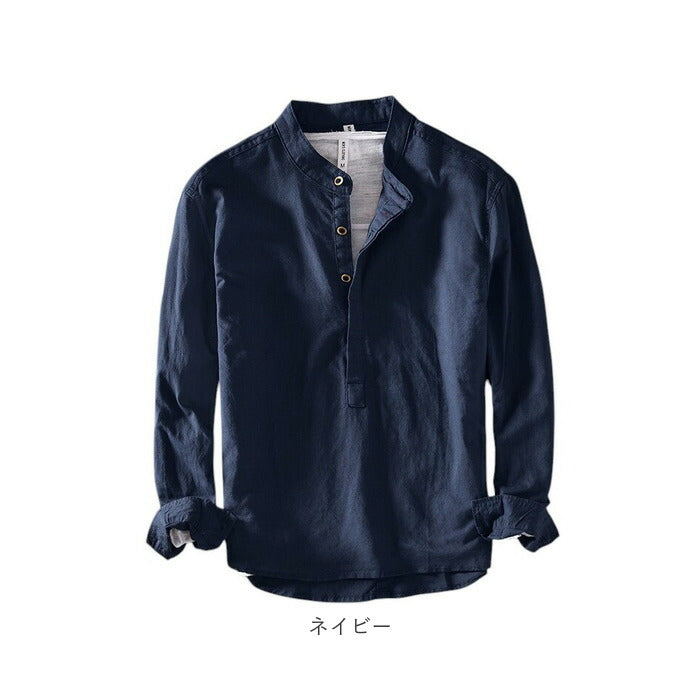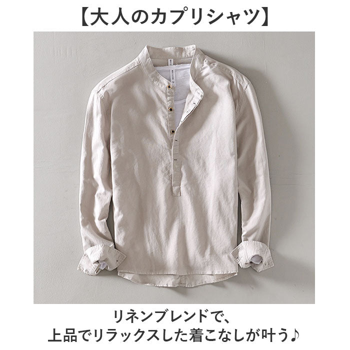 カプリシャツ メンズ 通販 シャツ 長袖 長袖シャツ シンプル トップス おしゃれ カジュアルシャツ ビジネス 仕事 無地 上品 プルオーバー 春秋 オフィス 通勤 コットンリネン 夏 秋服