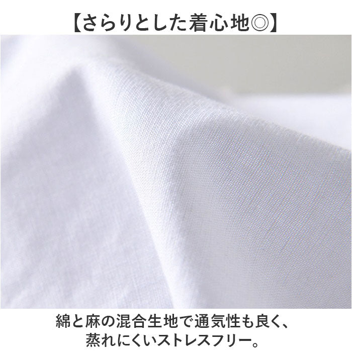 ・綿と麻の混合生地で通気性も良く、蒸れにくいストレスフリー。