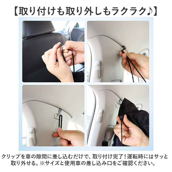 ・クリップを車の隙間に差し込むだけで、取り付け完了!運転時にはサッと取り外せる。