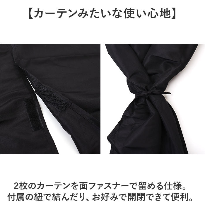 ・2枚のカーテンを面ファスナーで留める仕様。付属の紐で結んだり、お好みで開閉できて便利。