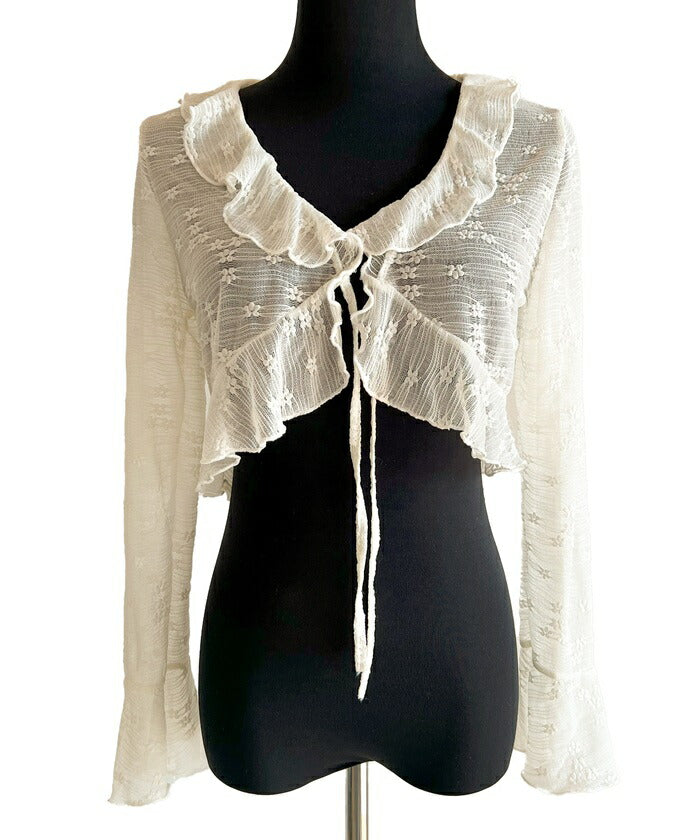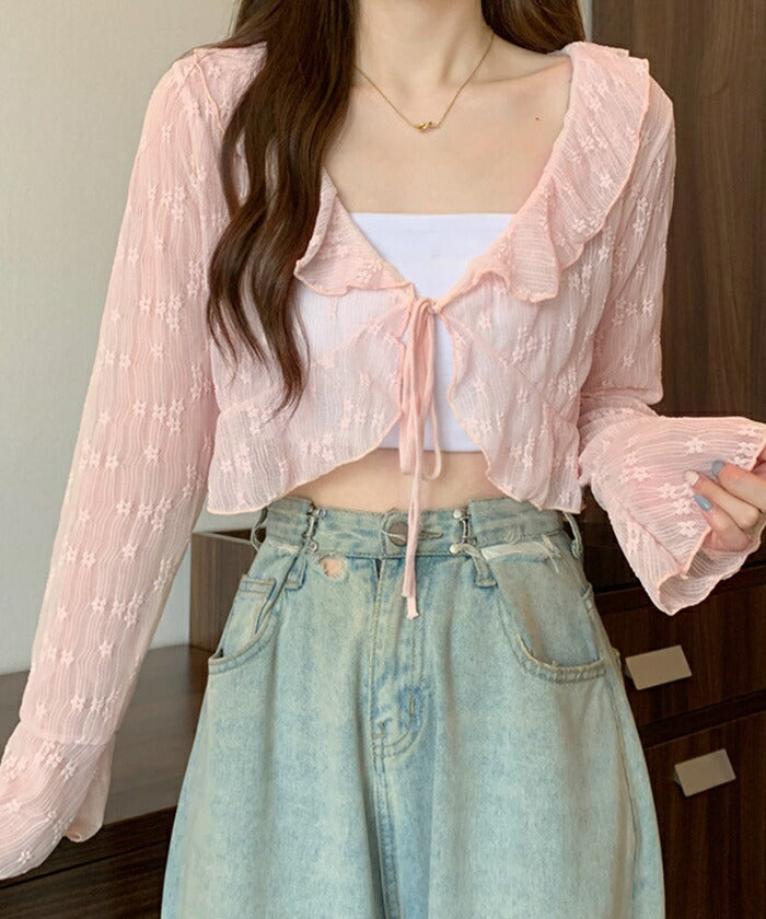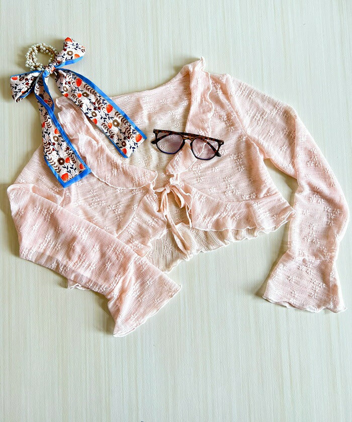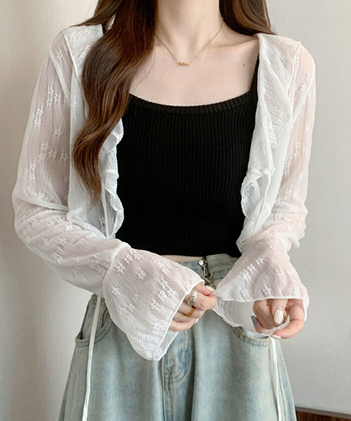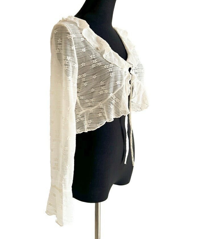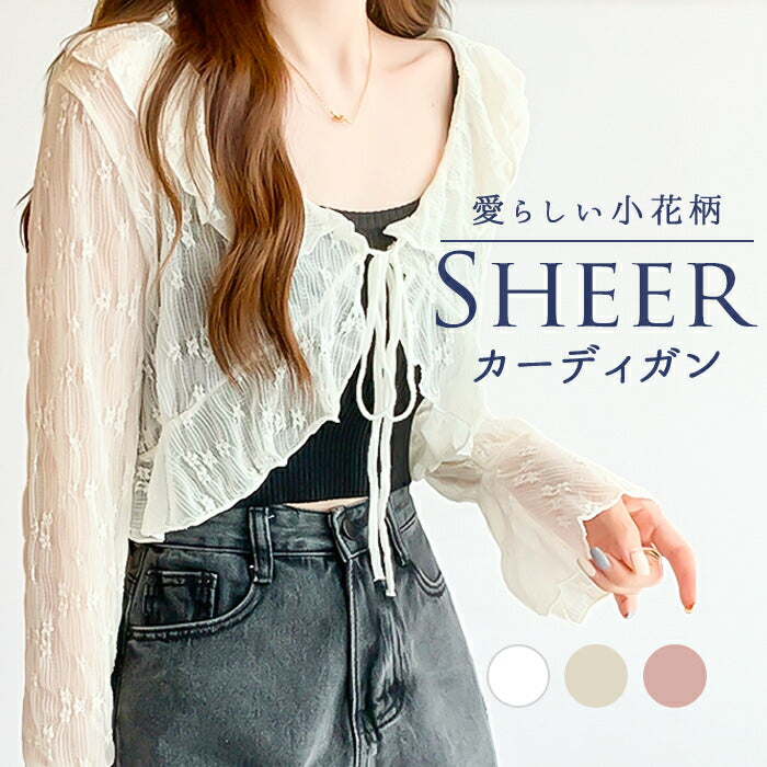 カーディガン レディース ショート丈 通販 シアーカーディガン ボレロ ショートカーディガン カーデガン 羽織もの はおりもの 薄手 長袖 小花柄 フリル トップス 大人 かわいい おしゃれ