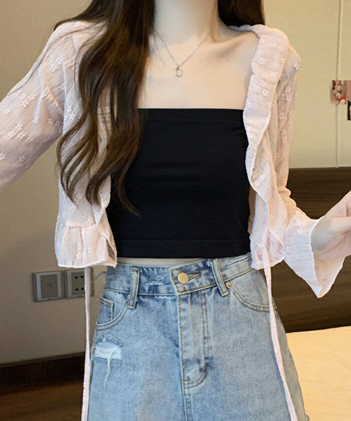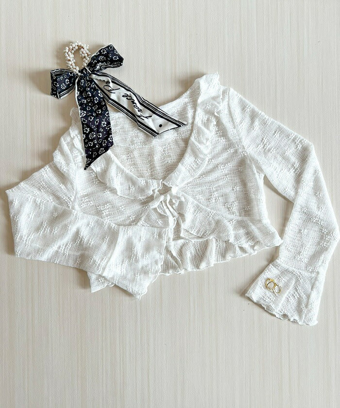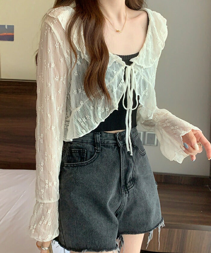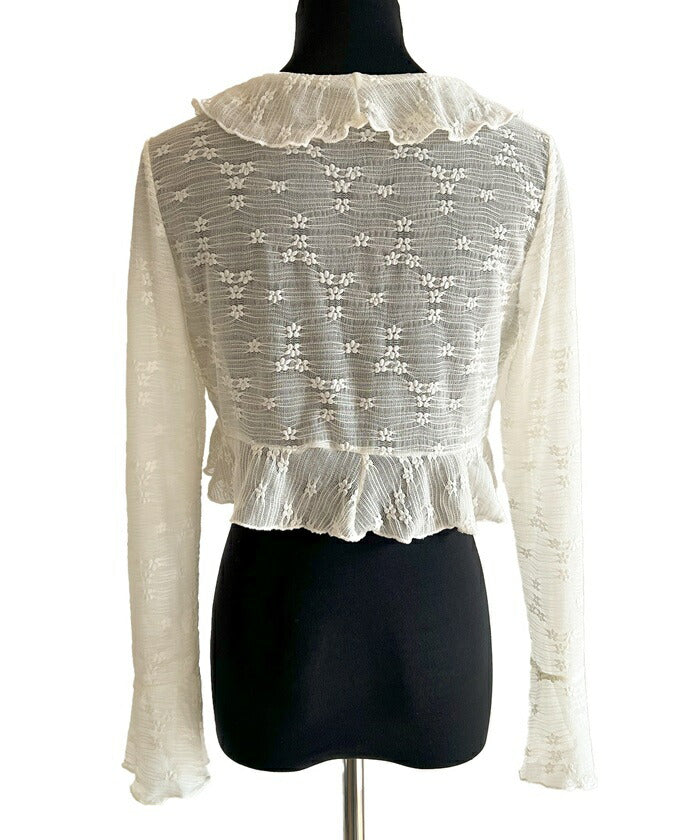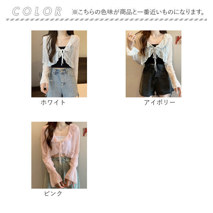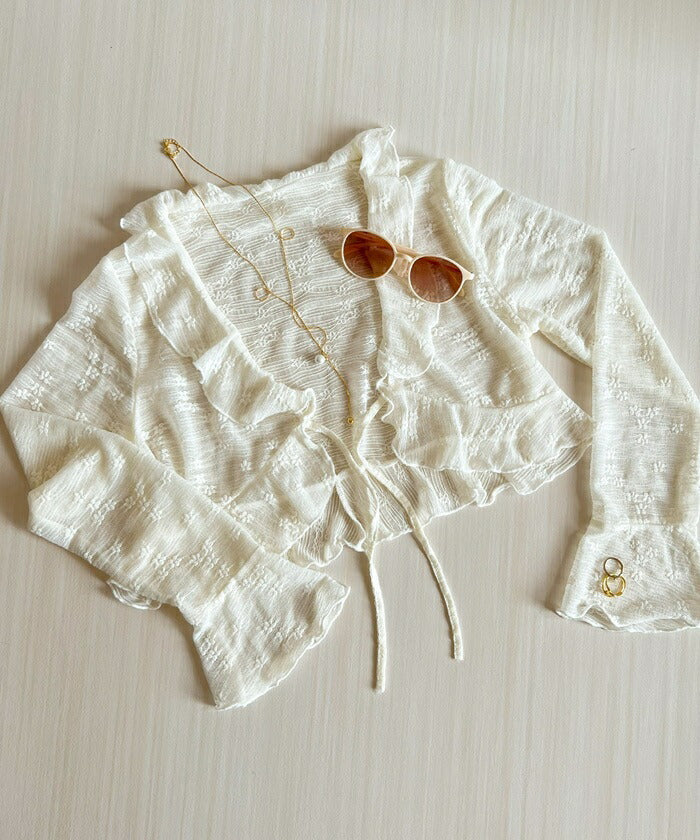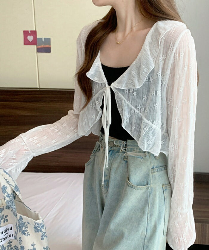 カーディガン レディース ショート丈 通販 シアーカーディガン ボレロ ショートカーディガン カーデガン 羽織もの はおりもの 薄手 長袖 小花柄 フリル トップス 大人 かわいい おしゃれ