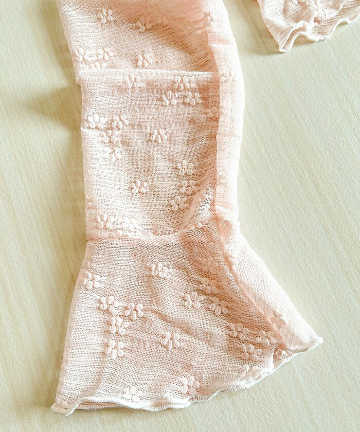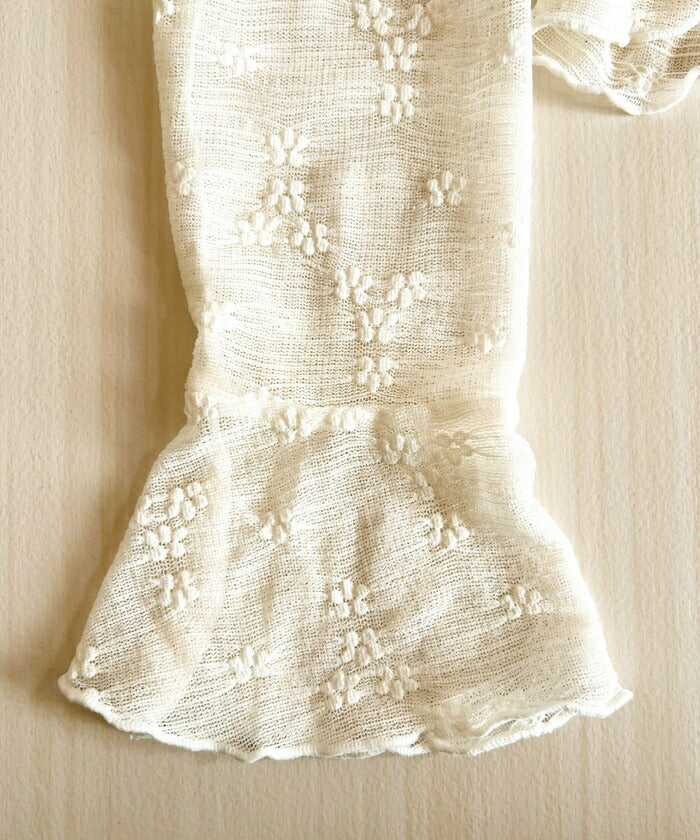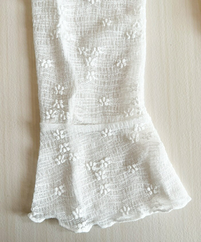 ・小花柄とフリルディテールがフェミニンな雰囲気を演出し、ほどよい透け感が抜け感とトレンド感をプラス。