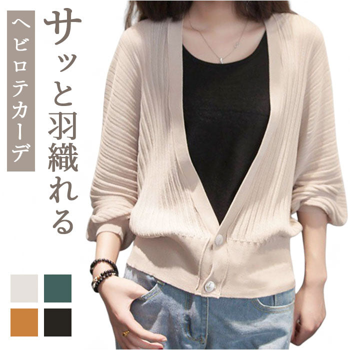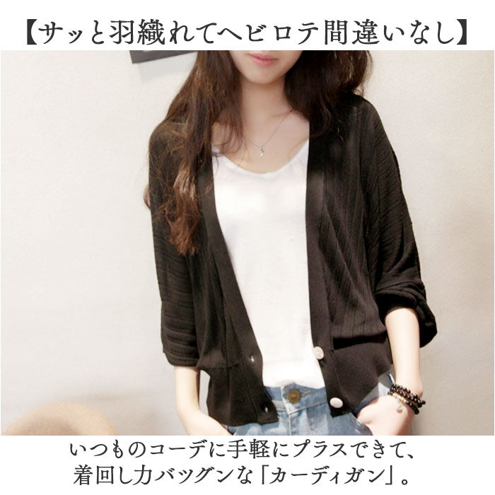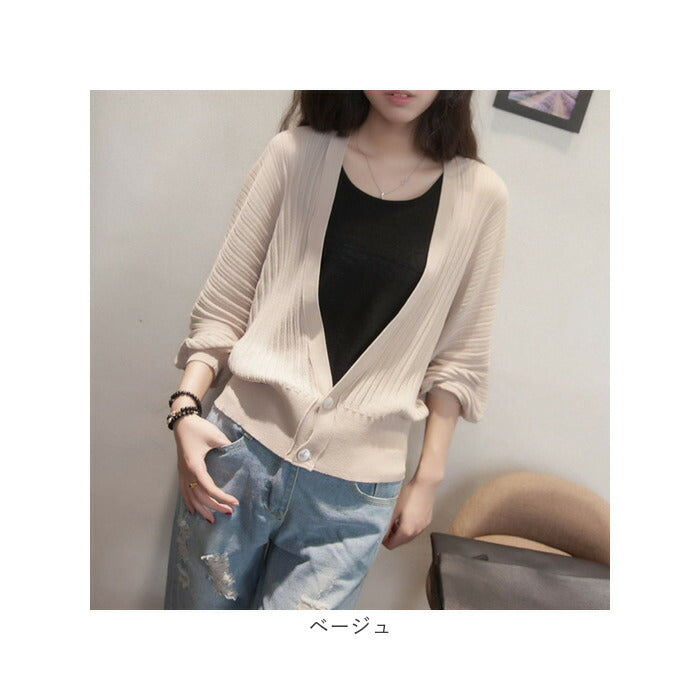 カーディガン レディース 薄手 通販 ニットカーディガン 長袖 ニット ドルマン ボリューム袖 羽織り トップス vネック リブ 無地 ゆったり 春 夏 秋 冷房対策 オフィス かわいい 可愛い