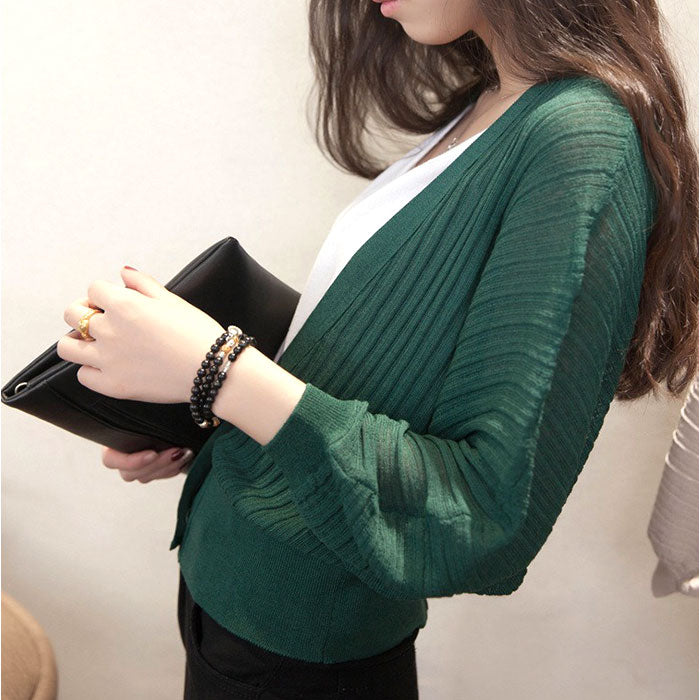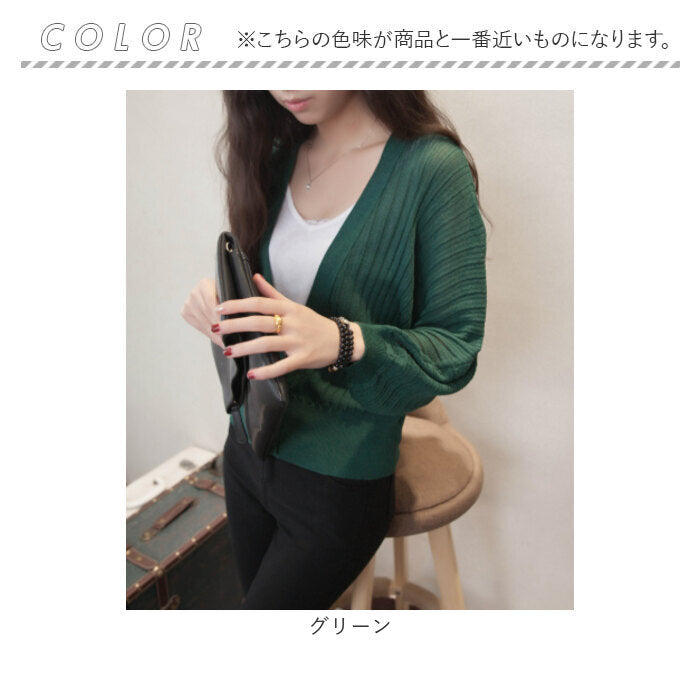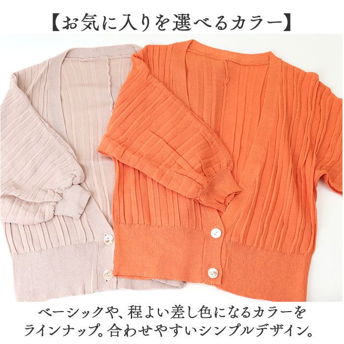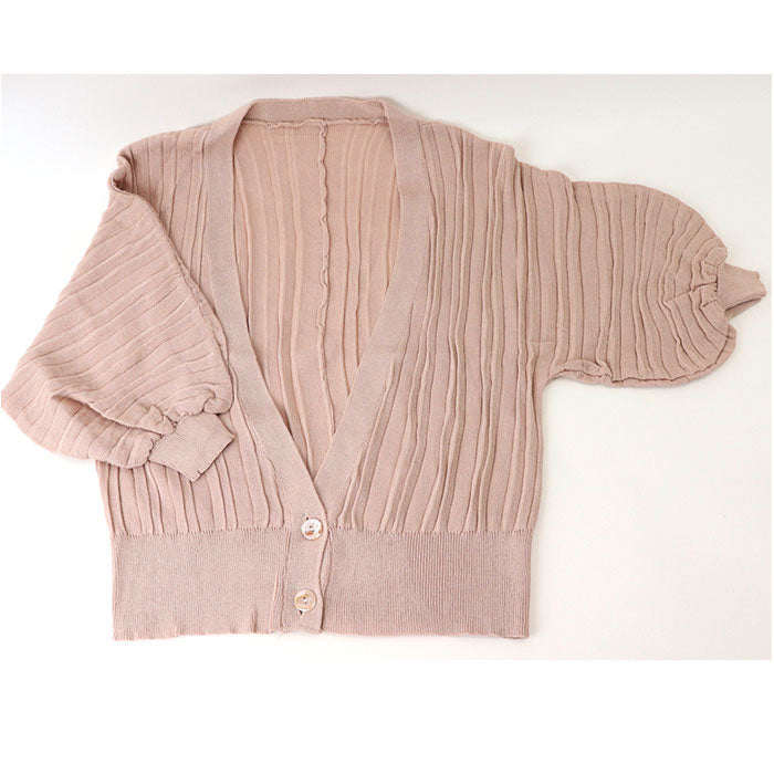 ショートカーディガン リブ ボリューム袖