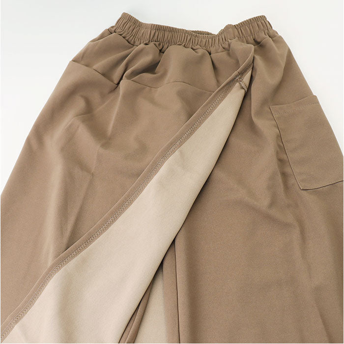 ・股上たっぷり、スカートのように生地を重ねたシルエット。さりげなく動きのあるデザイン。