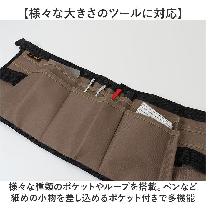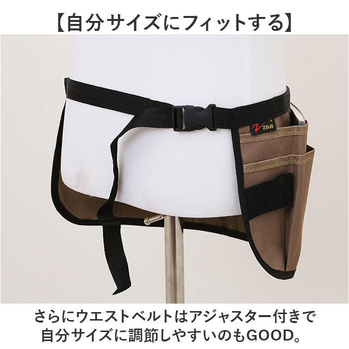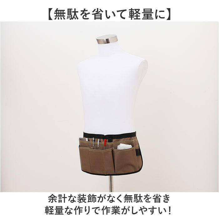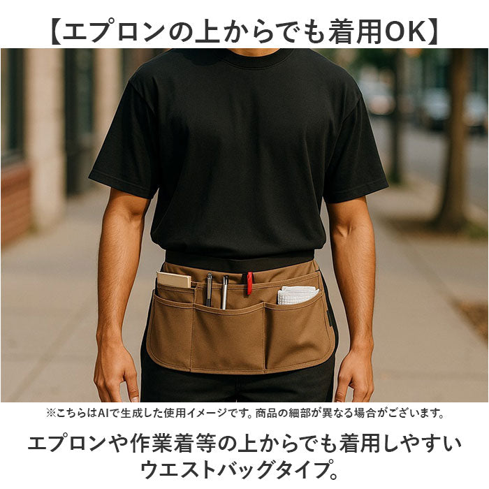 ・エプロンや作業着等の上からでも着用しやすいウエストバッグタイプ。