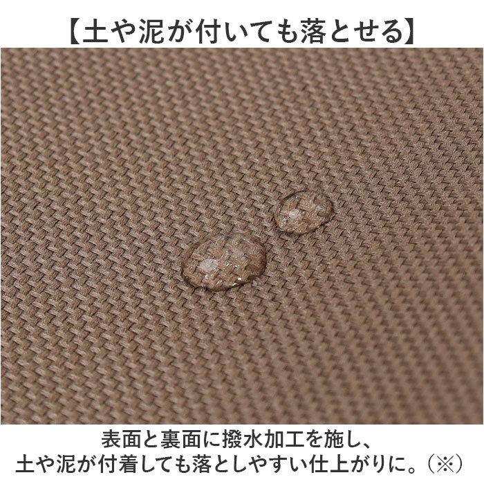 ・表面と裏面に撥水加工を施し、土や泥が付着しても落としやすい仕上がりに。※