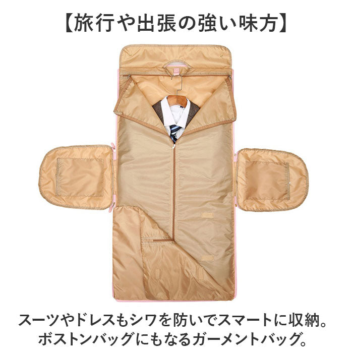 ・スーツやドレスもシワを防いでスマートに収納。ボストンバッグにもなるガーメントバッグ。