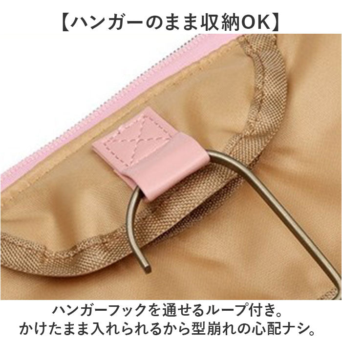 ・ハンガーフックを通せるループ付き。かけたまま入れられるから型崩れの心配ナシ。