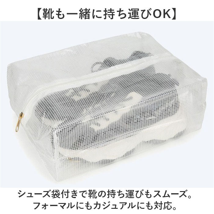 ・シューズ袋付きで靴の持ち運びもスムーズ。フォーマルにもカジュアルにも対応。