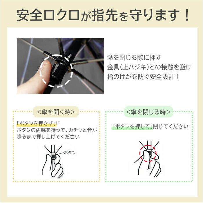 ・傘生地がスムーズに開閉できる、8本骨の手開き傘。手指を挟みにくいよう配慮された安心設計。