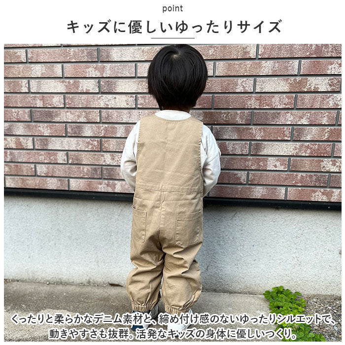 ・ざっくりとラフなデニム素材で、可愛らしくカントリーコーデ!ゆったりシルエットで動きやすい「キッズオーバーオール」が新登場。