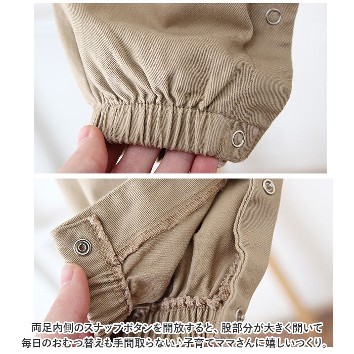・両足内側のスナップボタンを開放すると、股部分が大きく開いて毎日のおむつ替えも手間取らない♪子育てママさんに嬉しいつくり。