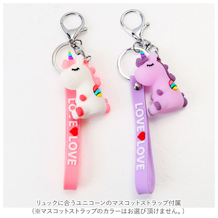 ・リュックに合うユニコーンのマスコットストラップ付属。(※マスコットストラップのカラーはお選び頂けません。)