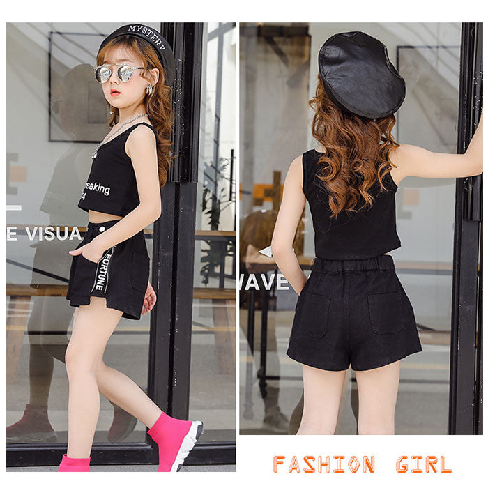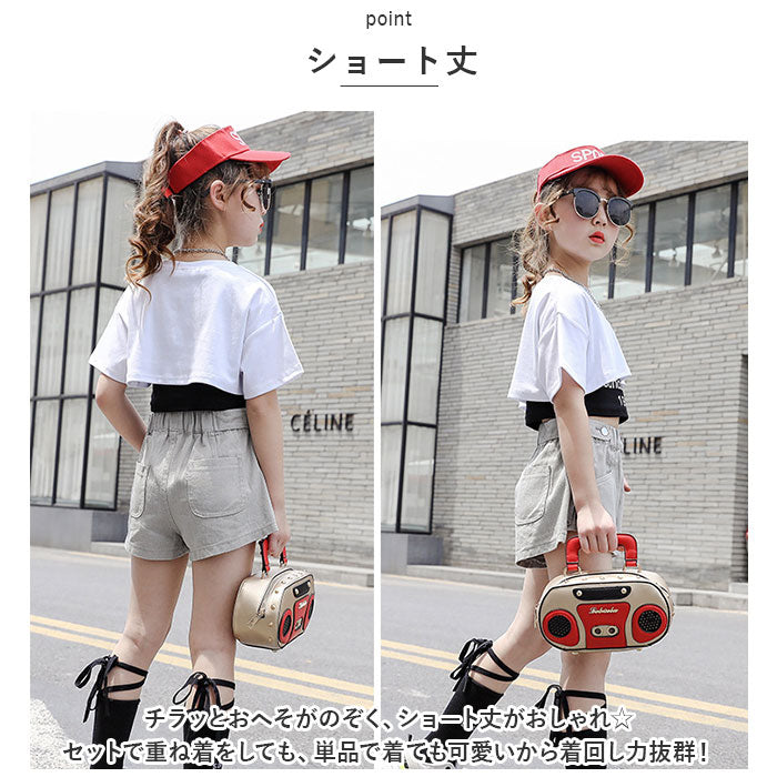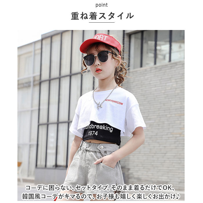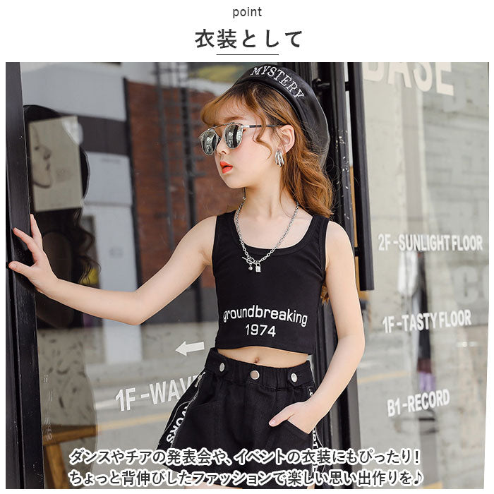 キッズ タンクトップ ダンス 通販 Tシャツ 半袖 アンサンブル ショート丈 Tシャツ ダンス衣装 女の子 夏服 子供服 子ども服 ガールズ ノースリーブ へそ出し チア 衣装 カットソー