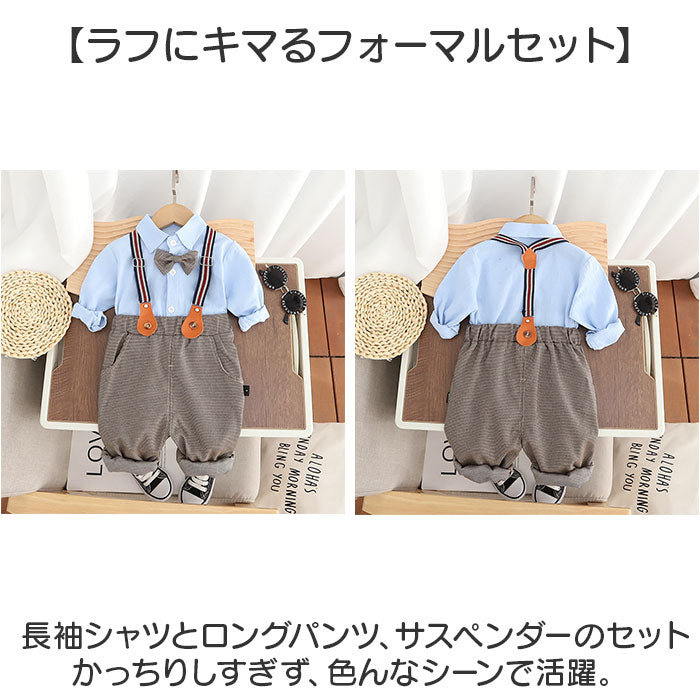 キッズ フォーマル 上下 男の子 通販 フォーマルスーツ 子供スーツ スーツ ズボン シャツ 長袖シャツ 蝶ネクタイ サスペンダー 子供服 子ども服 セパレート 上下セット セット ボーイズ