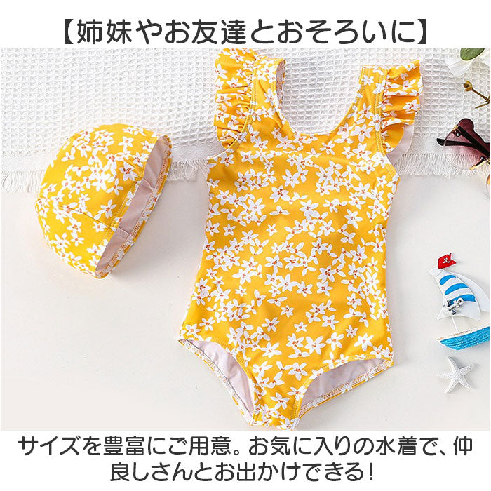 キッズ水着 花柄 リボン