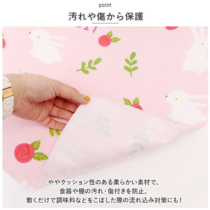 ・柔らかくややクッション性のある素材で、食器や棚の汚れ・傷付きを防止。敷くだけで調味料などをこぼした際の流れ込み対策にも!