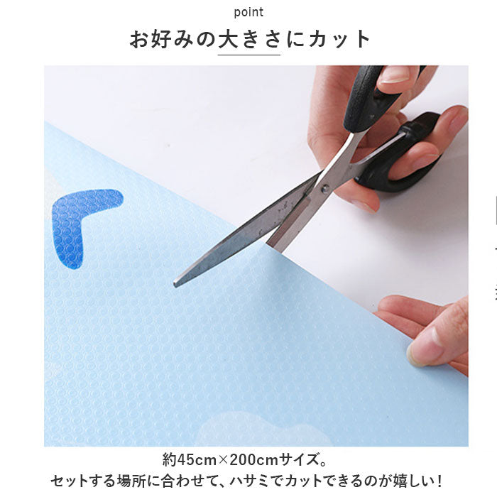 ・約45cm×200cmサイズ。セットする場所に合わせて、ハサミでカットできるのが嬉しい!