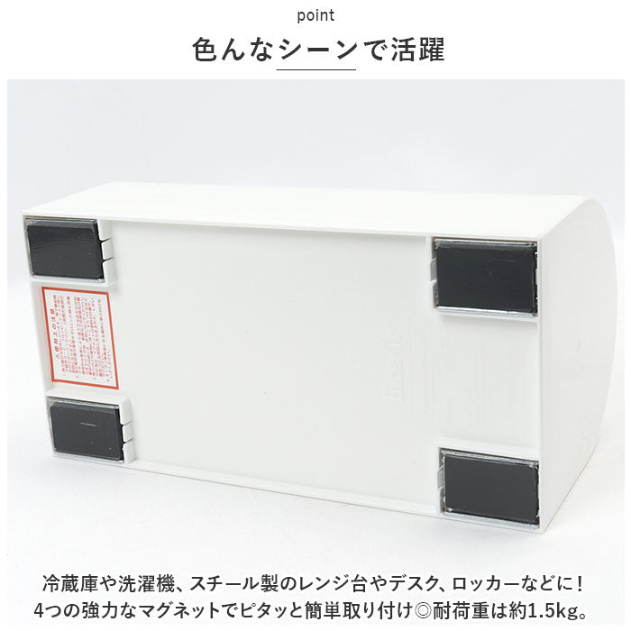 ・冷蔵庫や洗濯機、スチール製のレンジ台やデスク、ロッカーなどに!4つの強力なマグネットでピタッと簡単取り付け◎耐荷重は約1.5kg。