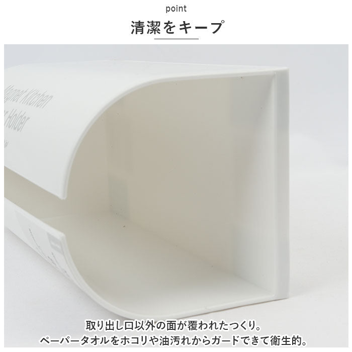 ・取り出し口以外の面が覆われたつくり。ペーパータオルをホコリや油汚れからガードできて衛生的。