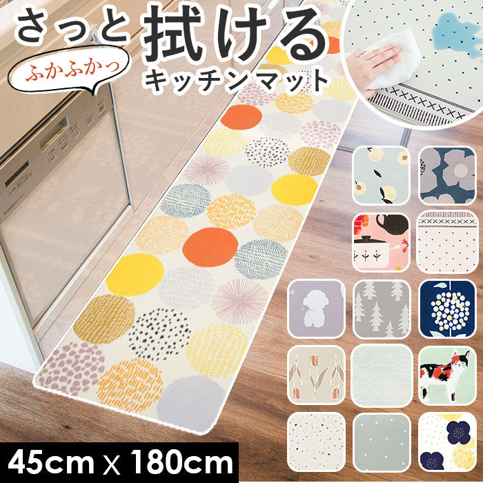 キッチンマット 拭ける 180 通販 北欧 風 おしゃれ 180cm 180センチ 台所マット 約 45×180 pvc マット 撥水 掃除 お手入れ簡単 クッションマット 台所用品 ロング 拭くだけ 掃除 簡単
