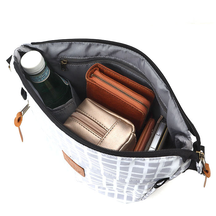・程よい深さに設計されたバケツ型シルエットのボディは500mlペットボトルや水筒も入れられるボトルホルダー付き。小物の収納に便利なオープンポケット、ファスナーポケット付きでバッグの中身がごちゃつかない◎