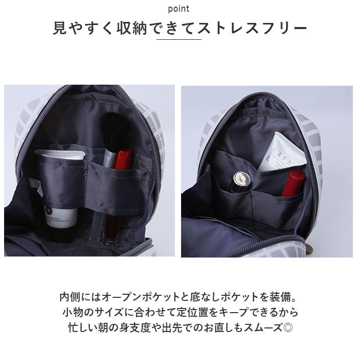 ・内側にはオープンポケットと底なしポケットを装備。小物のサイズに合わせて定位置をキープできるから、忙しい朝の身支度や出先でのお直しもスムーズ◎