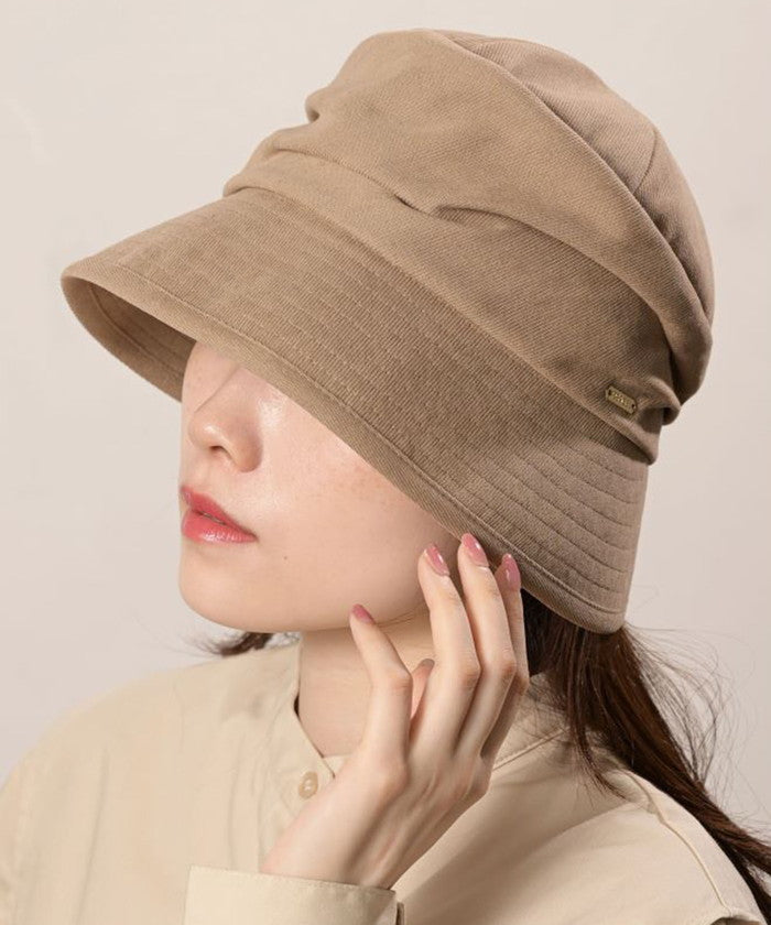 ・上品な極細コーデュロイ生地。後ろはスリットになっていて被りやすく、ゴールドのプレートがおしゃれ。
