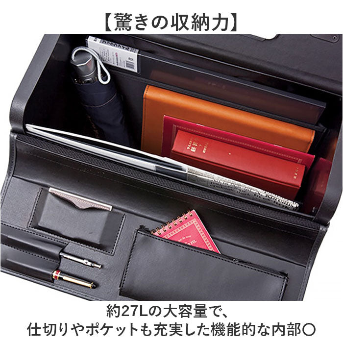 ・上部が大きく開き出し入れしやすく、営業や出張時の大切な書類の持ち運びに最適。
