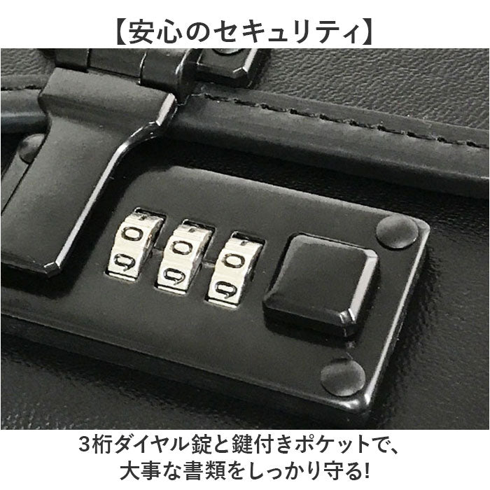 3桁ダイヤル錠と鍵付きポケットで、大事な書類をしっかり守る!※ 誤動作防止ピン(ダイヤルに差してある赤いステック)を抜く前に、同梱の操作説明書を必ずお読みになって下さい。