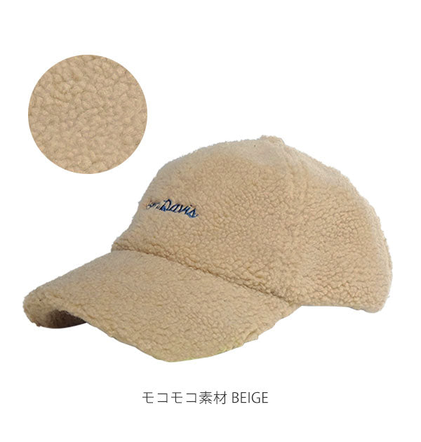 ベンデイビスのコーデュロイとモコモコ素材の秋冬生地のキャップです。コーデュロイは細かいタイプで、低めのローキャップ。モコモコのタイプは生地がふわっとしていて秋冬にぴったりな質感です。
