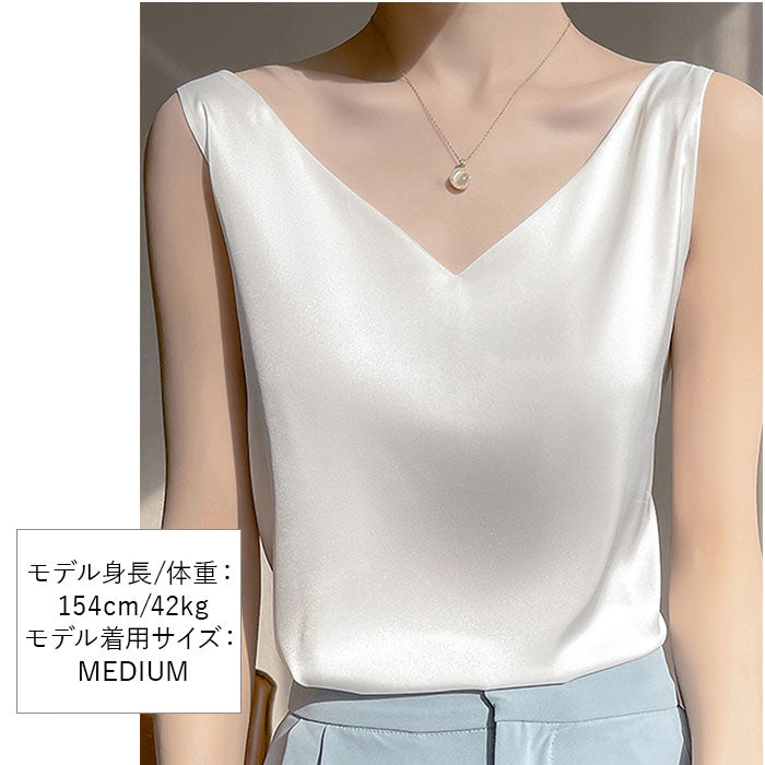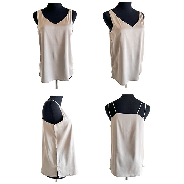 ・エレガントで洗練されたデザインのシルキータッチのキャミタンク。