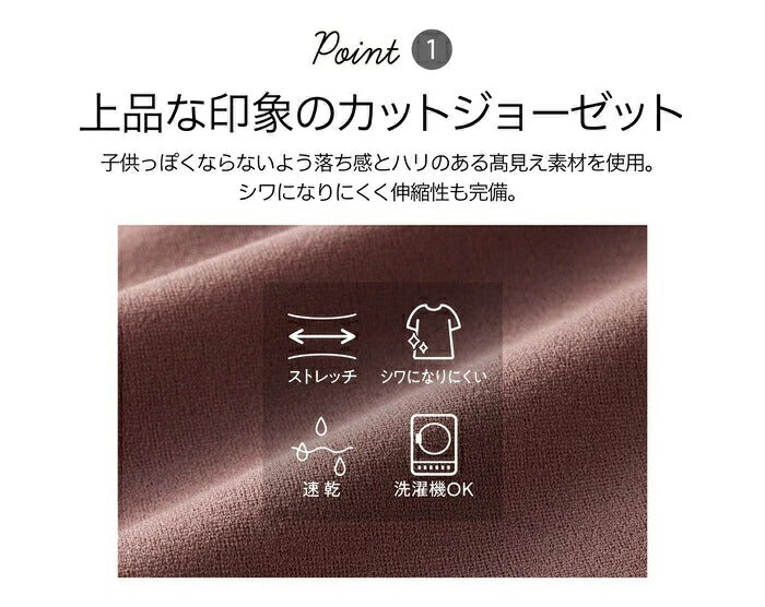 ・子供っぽくならないよう落ち感とハリのある高見え素材を使用。