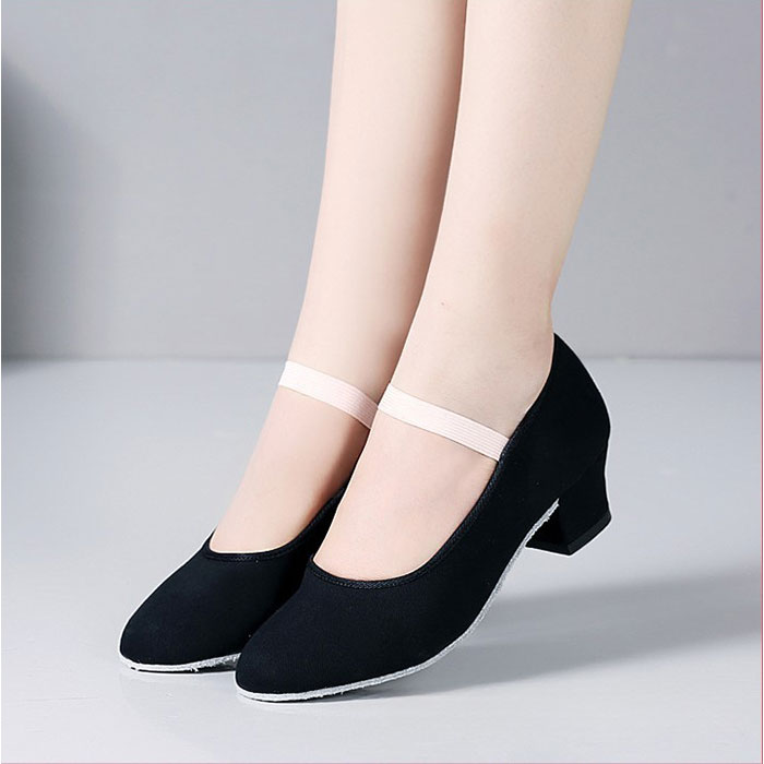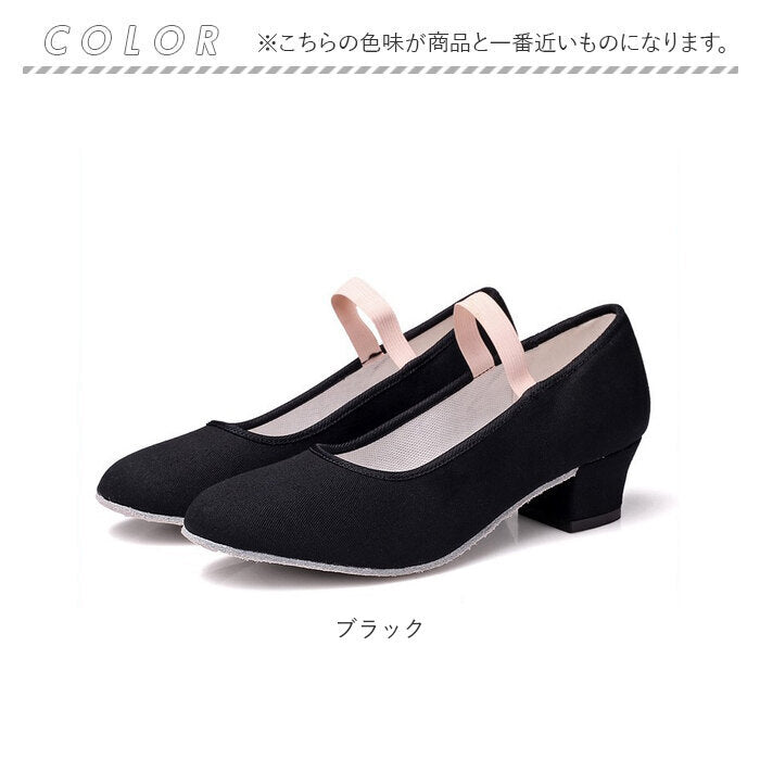 キャラクターシューズ バレエ ヒール 通販 バレエシューズ ダンスシューズ シューズ 靴 くつ 黒 ブラック 社交 ジャズダンス 布製 平ゴム 2.5cm クッション性 蒸れにくい 発表会 舞台