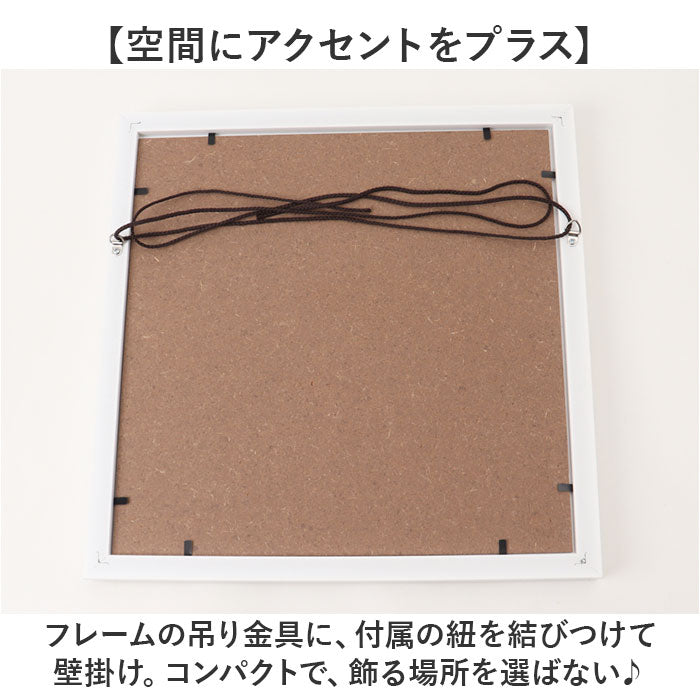 ・フレームの吊り金具に、付属の紐を結びつけて壁掛け。コンパクトで、飾る場所を選ばない♪