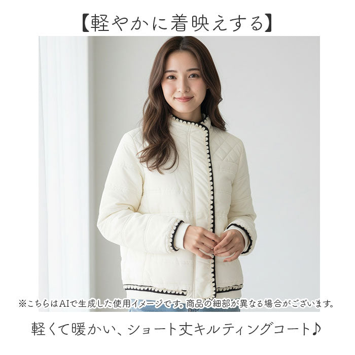 キルティングコート レディース ショート 通販 ダウンコート ダウン アウター ショートダウン 防寒コート 防寒ジャケット 薄手アウター 薄手 キルティング ショート丈 秋物 秋 着痩せ