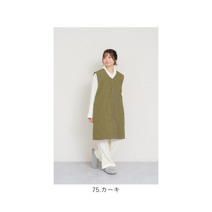 キルティングベスト レディース 通販 ジレ ロングジレ 前開き フロントボタン ノースリーブ おしゃれ ロングベスト ロング丈 撥水 はっ水 トップス かわいい カジュアル 暖かい 防寒