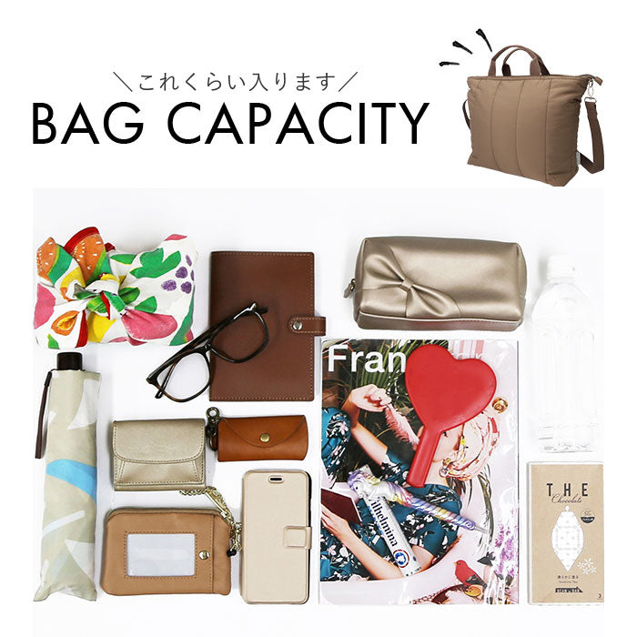 ・日常のお出かけに必要な小物がスッキリ入るサイズ感♪マチ幅があり厚めのポーチやスリムなお弁当の収納もOK、見た目以上の収納力。