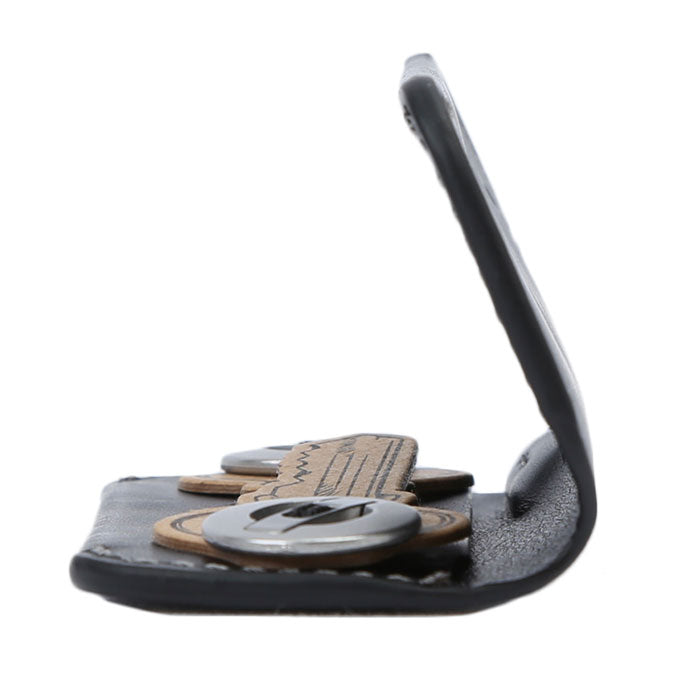・カバーの端に車のキーやキーチェーンが付けられるレザータブ付き。