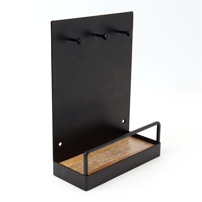 ・複数の鍵を掛けられる、3つのフック付き。ウッド素材の部分に小物を置いてもOK。