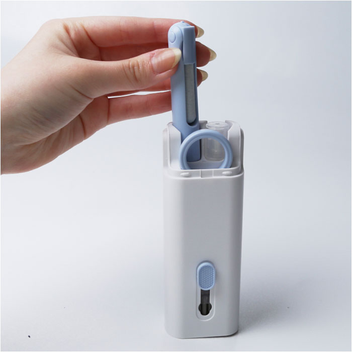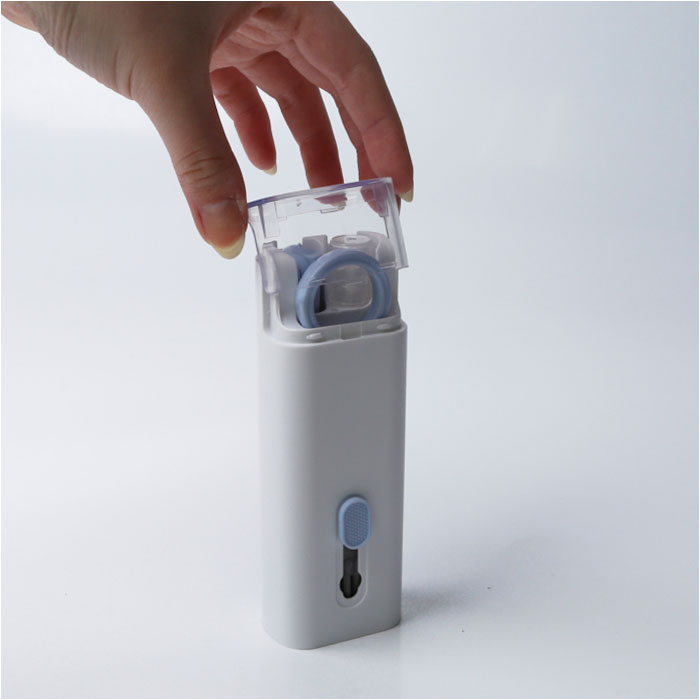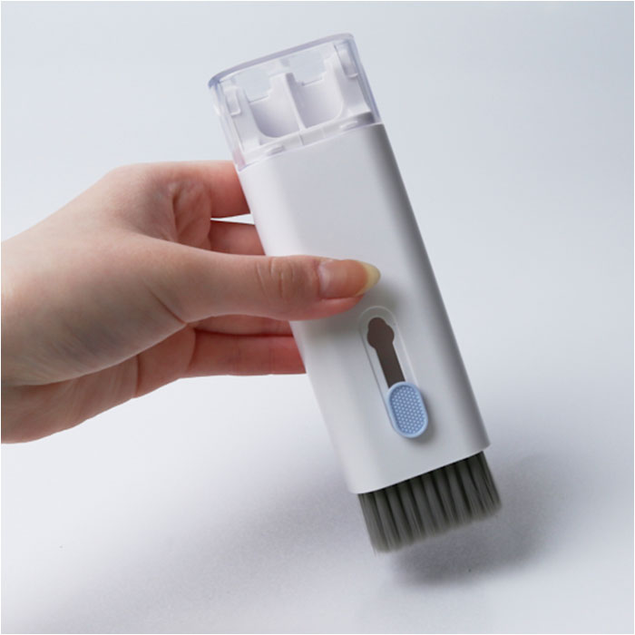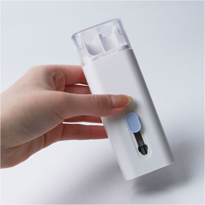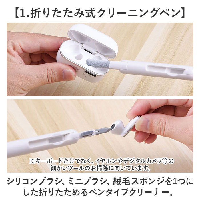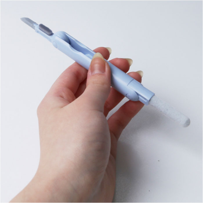 ・シリコンブラシ、ミニブラシ、絨毛スポンジを1つにした折りたためるペンタイプクリーナー。