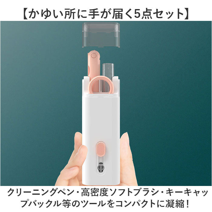・毎日指先が触れるキーボードやPC周りの汚れを隅々までクリーニングできる、多機能5点セット。
