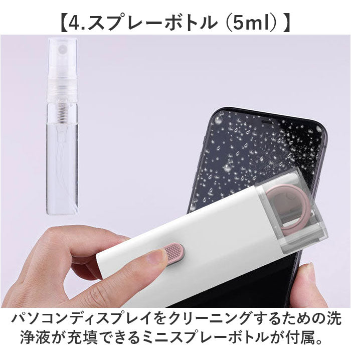 ・パソコンディスプレイをクリーニングするための洗浄液が充填できるミニスプレーボトルが付属。