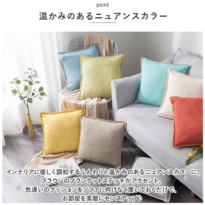 ・お手持ちのクッションに、サッと被せて気軽に模様替え!明るいトーンでお部屋を素敵に彩る、シンプルなクッションカバー。