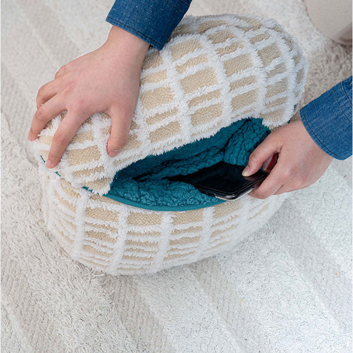 ・くすみカラーの優しい色合いが可愛い、ボアチェック フットインクッション。