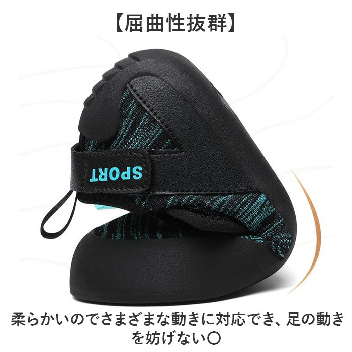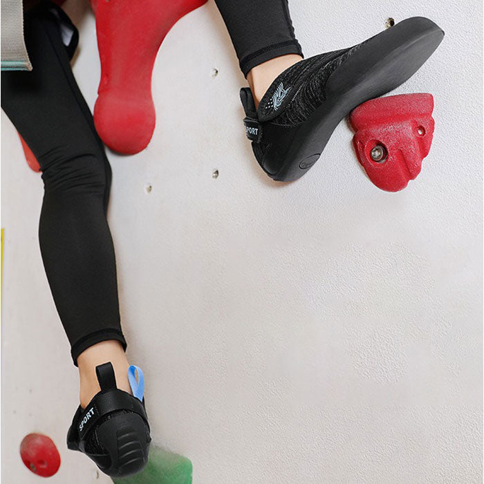・滑りにくいゴム底で、ボルダリングやクライミングをサポート。