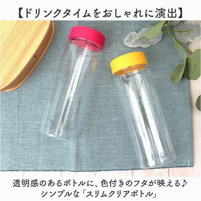 ・透明感のあるボトルに、色付きのフタが映える♪シンプルな「スリムクリアボトル」。