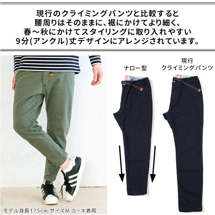 クリフメイヤー パンツ 通販 メンズ ナロー クライミングパンツ 9分丈 短め オフホワイト ライトグレー おしゃれ Lサイズ XLサイズ ブランド 春服 夏服 秋服 サンド アンクル丈 カーキ ブルー ストレッチ ツイル生地 Sサイズ Mサイズ カジュアル シンプル ズボン